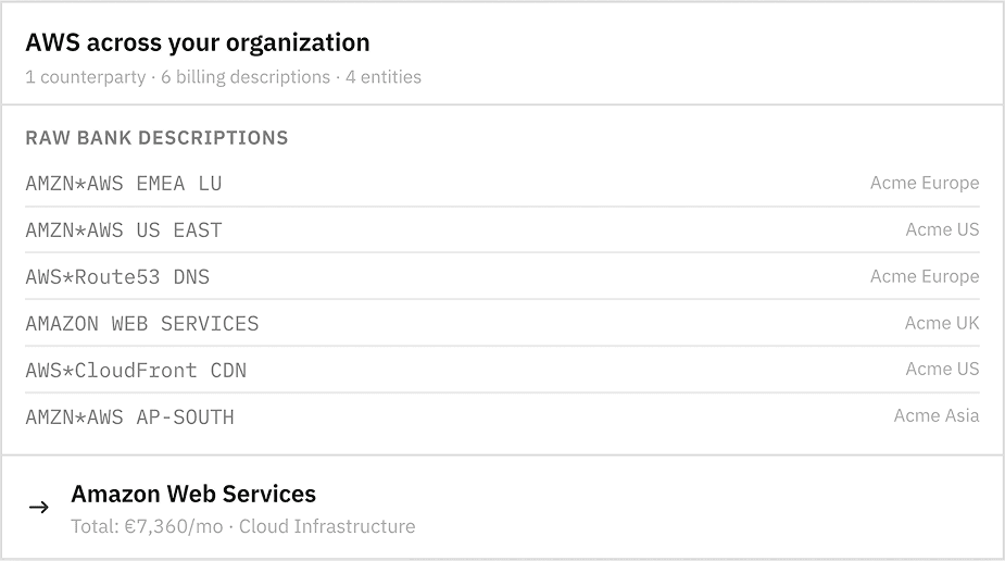 This means you can slice your spending by vendor, software tool, or supplier - across all entities, over time. No need for overly complex Excel macros that break.